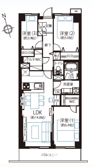 | 専有面積 | 壁芯 72.68㎡ | 所在階 | 14階建/14階部分 |